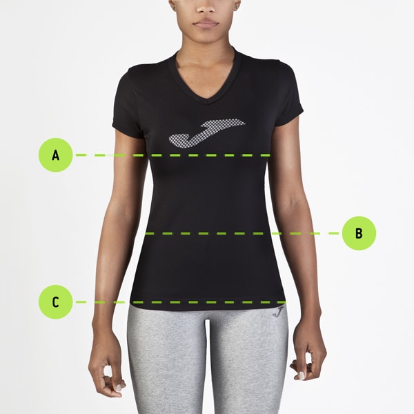 B - Csípő Mindkét lábát zárja össze, mérje meg a csípője legszélesebb részét, a mérőszalagot vízszintesen tartva..